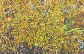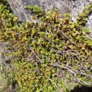 Very low growing spreading shrub bearing small thick brownish-green leaves that are dark spotted and with a dark blotch at base inhabiting rocky sites in mountain areas. Leaves 4-10mm long by 4-10mm wide. Fruit purplish, 5-6.5mm wide.