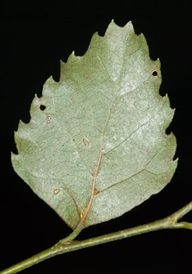 Tall forest tree bearing masses of small sharply-toothed leaves that also have a small hairy pit at the junction of the veins. Trunk flaky. Leaves 2-4cm long. Flowers and fruit small and usually inconspicuous but change colour of tree when in flower.