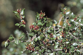 Secondary beech host for yellow mistletoe (Alepis flavida) and red mistletoe (Peraxilla tetrapetala).