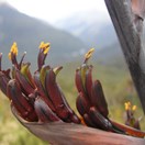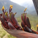 Stout liliaceous herb, 0.6-1(-2) m tall. Leaves numerous, arising from fan-like bases. Individual leaves "paddle-shaped", erect, stiff, rarely decurved or pendulous 0.6-1(-1.5) x 20-80 mm, glaucous. Lamina margin, entire, somewhat thickened and distinctly pigmented by a dark, rather broad often encircling band 3-5 mm wide. Inflorescence (0.8-)1(-2) m tall, somewhat woody and fleshy when fresh, long persistent, drying charcoal grey or black, with the fibrous interior becoming progressively more exposed. Peduncle 20-30 mm diam., inclined, dark red-green, glabrous. Flowers 25-40 mm long, tubular, dull pink or yellow; tips of inner tepals markedly recurved. Ovary erect. Capsules 100-120 mm long, dark green, trigonous in cross-section, pendulous, tapering toward tip, twisted, initially fleshy becoming papery with age, long persistent. Seeds 8-10 x 4-5 mm, black, elliptic, flat and plate-like, margins frilled or twisted.