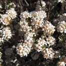 Bushy small shrub with pairs of greyish hairy pointed leaves inhabiting very dry rocky sites in Central Otago. Twigs hairy. Leaves 8-12mm long by 2-3mm wide, widest at base, pointed, hairy on both surfaces. Flowers white with a hairy pinkish body, in clusters. Fruit dry, enclosing black seed.