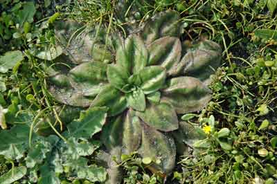 Plantago: old Latin name for flat-leaved plants