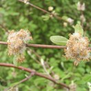 Deciduous shrub or small tree up to 10 m tall. Trunk up to 1 m diam., bark thick, somewhat corky, grey, persistent, deeply marked with longitudinal furrows. Branches one to many, often spreading. Branchlets slender, grooved, glabrescent; bark red, red-brown to bronze-red. Adult leaves 2-4 on short shoots or widely spaced along fast growing branchlets; petioles 5 mm, slender; leaf lamina 20-50 x 5-20 mm, grey-green to green above, silvery-grey beneath, narrow-oblong, oblong-ovate to broadly-ovate, undersides clad in silvery tomentum, upper surface glabrescent; lamina margins flat and entire. Capitula in fascicles of 2-6, 5 x 5 mm; pedicels slender, silky hairy, 15 mm long. Florets 20-25, pale yellow, ray-florets 10-15, narrow, rather short, disc florets 10-15. Phyllaries in 2 series, weakly imbricate, oblong, obtuse, exposed surface pilose hairy. Achenes 1-2 mm, narrow-obovate. Pappus-hairs 3-5 mm long.