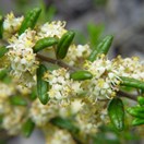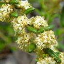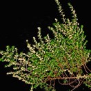 Locally very common small shrub to 1m tall with hairy twigs bearing masses of small narrow wrinkled leaves and clusters of white flowers. Leaves 5-10mm long by 1-2mm wide, margins inrolled to almost cover the underside. Fruit dry, small.