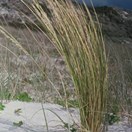 Yellow-green tussocks up to about 70 cm tall. Leaves fine, rolled, somewhat drooping (coarser than silver tussock), initially green, often fading at tips to silver, and drying to golden-straw colour. Seed heads no longer than leaves; seeds relatively large, barley-like, leaving a characteristic zig-zag look to the remaining head when fallen. Flowers in early summer and the seed are produced in late summer. It could be confused with Poa chathamica which has blue-green or grass-green flat leaves and an open seed head which overtops the foliage. It could also be confused with marram grass which has similar foliage but large cat’stail-like seed heads which overtop the foliage.