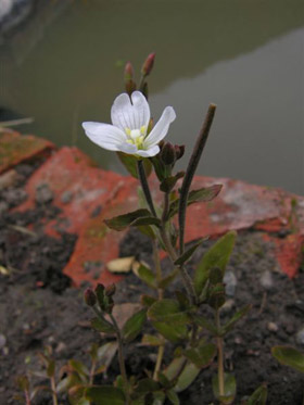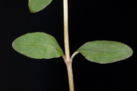 Loosely clumped perennial herb up to 0.75 m tall, producing numermous leafy stolons above and below ground; stems often reddish, mostly glabrous, strigulose along lines decurrent from the margins of the petioles below and all round above and in the inflorescence, more rarely pubescent all round to the base. Leaves much shorter than the internodes they subtend, mostly opposite, a few alternate in the inflorescence, dull green, paler beneath, the lateral veins quite prominent, 3-4 on each side of the midrib, subsessile; lamina 12-40 × 7-15 mm, elliptic to ovate, acute at the apex, narrowly cuneate to rounded at the base, margins serrulate, usually with 7-14 often obscure teeth on each side. Inflorescence erect. Flowers erect. Ovary 10-20 mm long, investiture mixed glandular and strigulose, on a pedicel 2-7 mm long. Floral tube 1.0-1.7 × 1.4-1.8 mm. Sepals 4.0-5.2 × 1.5-1.7 mm, slightly keeled, indumentum of mixed glandular and strigulose hairs. Petals 6.0-11.0 × 4.5-6.0 mm, notch 0.8-1.3 mm deep, white, often flushed pink at fertilisation. Stamens filaments white, of two types: long (2.0-3.5 mm long) and short (0.8-1.3 mm long), Anthers 1.3-1.5 × 0.6-0.7 mm, bright yellow. Style 5.2-9.0 mm long, white, stigma 1.0-2.0 x 0.9-2.0 mm, globose, obscurely 4-lobed, held above anthers in early anthesis. Capsule 40-60 mm long on a pedicel 12-28 mm long, moderately to densely strigulose and glandular. Seeds 1.4-1.8 mm long, dark brown, narrowly obovate to obovate, finely reticulate to reticulate-mamillate; coma 7.5-11.0 mm long, orange to orange-brown, persistent.