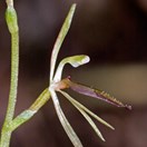 Winter to spring flowering perennial herb. Plants at flower up to 100 mm tall (usually less), elongating in seed, Stem erect, slender. Leaf sessile, almost basal, 10-40 x 8-17 mm, grey-green with whitish veins above, pale silvery green below, ovate, obtuse to subacute, base cordate to rounded. Inflorescence a raceme up to 30 mm long; floral bracts diminutive, membranous. Flowers 1-4; perianth 8-10 mm long, spreading, pink or pinkish-green. Sepals subequal; dorsal sepal narrow linear-lanceolate, obtuse, erect, concave; lateral sepal narrow-linear, acute, projecting forwards or widely spreading. Petals similar to lateral sepals. Labellum 10 x 4 mm, oblong; apex obtuse, not recurved, projecting horizontally forwards, the adjacent margins toothed; surface more or less plane, lamina bearing two prominent, spheroidal basal calli and two, flat, longitudinal ridges that extend nearly to the apex. Column shorter than the labellum, conspicuous; wings narrow below, widening above so that the stigma is flanked by two lobes. Pollinia two per anther cell, more or less ellipsoid to tabular, some what crescent-shaped, crumbling readily in single grains.