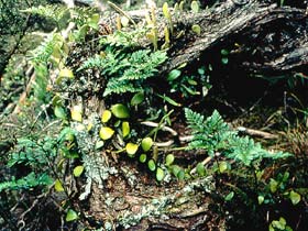 Mainly terrestrial but also present as a low epiphyte and also on fallen logs and branches. In full sun of heavy shade.