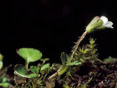 The exact extent of decline or the degree of threat this small herb actually faces is unclear. It would appear to have recently gone extinct in its only known North Island location, perhaps through natural succession to taller plants. In the South Island some populations have been lost as a result of weeds spreading into its habitat. However, as the species is very cryptic it is easily overlooked so it is possible that some of those populations believed to have gone are still there, while the exact distribution of the species remains unclear.