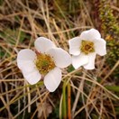 Low-growing, loosely mat-forming, strongly rhizomatous herb up to 200 mm tall at flowering, arising from a ± stout, initially fleshy, ultimately woody stock. Basal leaves up to 120 mm long, imparipinnate, glossy dark green fading to dark red, areolate, glabrate to moderately pilose, margins lobulate-crenate, undulose, fringed with a dense covering of harsh golden yellow hairs, hydathodes white, conspicuous; lateral leaflets in 1-2(-5) pairs, all very reduced and lowest rudimentary; terminal leaflet 10-40 mm long, crenate-dentate and sometimes obscurely lobed; cauline leaves reduced to small, toothed bracts. Scape up to 200 mm long, finely pubescent, intermixed with longer, wispy, multicellular glandular hairs. Flowers solitary, up to 25 mm diameter. Calyx pubescent and villous, lobes c.6 mm long, narrow-ovate, bracteoles minute, deeply bifid. Petals 7-17 mm long, white or creamy white, broadly ovate. Disc crimson. Anthers purple. Achenes numerous, c. 2 mm. long, densely pilose especially on margins; style remnant c.5 mm long, apex hooked.