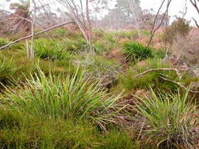 A coastal to lowland wetland species favouring high moor restiad dominated peat bogs. However, it is also known from low moor systems and transitional bogs, the margins of swamps developed within geothermal areas and even from the floating sud communities developed around peat lakes.