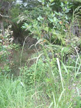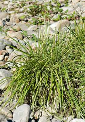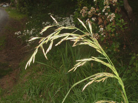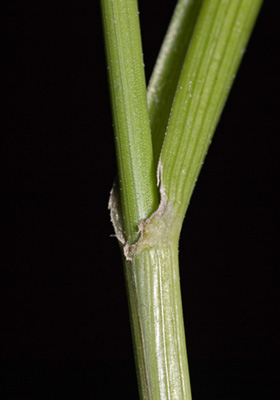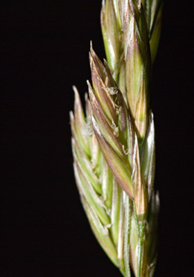 Tall, erect, fairly harsh, perennial grass. Auricle with very short bristly hairs, that continue along the margins at the base of the leaf blade. Otherwise the plant is glabrous. Hybrids are produced with both Lolium perenne and L. multiflorum. Lolium species are lush grasses and do not have hairy auricles.