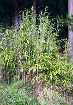 P. japonica is the bamboo species most commonly known to flower in NZ. Distinctive vegetative characters include round, not notched, stem, the white band below the node and single branches on lower nodes, with 2-3 on upper nodes.
