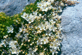 Alpine. A species of damp sites within marble karstfield. It seems to prefer to grow on shallow, skeletal soils and on rock outcrops where competition from taller plants is minimal. Specimens have been seen growing on the margins of sink holes in places that are periodically flooded, tarns, at the toe slope of scree and adjacent herbfield.