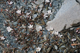 A scree species where it usually grows in fine-grained, more stable, moist screes, and in gravel, debris slopes and on or near rock outcrops.