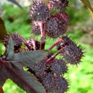 Castor oil plant is a small, spreading tree up to 4m tall. The leaves are large, soft and deeply lobed (20-40 cm diam.). The flowers are clustered in heads and the soft spiny capsules contain rectangular seeds up to 15 mm long. (West 1996)
