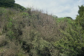 This is a highly disjunct species which in parts of its range can be very common and at others extremely scarce. At all known sites hybrids with O. arborescens (G.Forst.) Cockayne et Laing (= O. xcapillaris Buchanan) are present. Despite its unusual distribution the majority of the known populations appear to be thriving. The largest populations are those centred on Mt Manuoha in Te Urewera National Park.