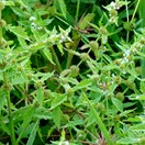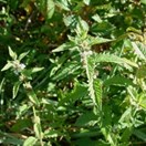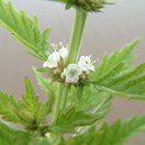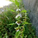 Mint-like plant, up to 1 m tall, with square stems, toothed paired leaves and tiny white or pale mauve flowers produced in groups above each pair of leaves in the upper stem, but no minty smell when crushed.