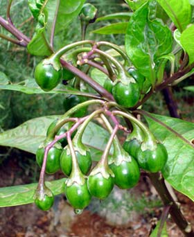 Solanum: Derivation uncertain - possibly from the Latin word sol, meaning "sun," referring to its status as a plant of the sun. Another possibility is that the root was solare, meaning "to soothe," or solamen, meaning "a comfort," which would refer to the soothing effects of the plant upon ingestion.