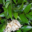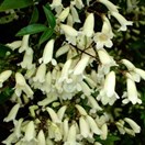Vigorous climber. Stems becoming woody. Leaves with 5-7 (occ 3 or 9) hairless leaflets; each 15-60 x 7-40 mm, narrow-oval, glossy. Flowers tubular, fragrant, 17-23 mm long, white or cream outside, cream or flecked with crimson or deep red inside; numerous in terminal panicles. Seed capsule to 9 x 2 cm, beaked, seldom seen.