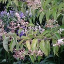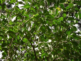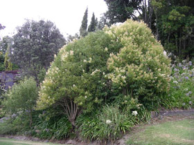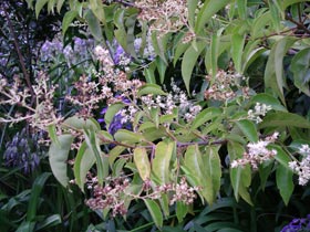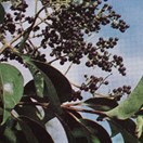 A small to medium sized glabrous, evergreen tree. The plant grows up to 10 metres tall. The leaves are oval, glossy and 5-13 cm x 3-6cm. The flowers are white and fragrant and occur in long panicles. The fruit are bluish or purple-black and are 6 x 5 mm in size.