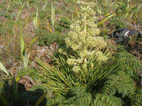 Found in open sites on sandy/peaty soils. Probably naturally occurs mainly in bog margins, canopy gaps, lake edges, streamside rock ledges and sites disturbed by seals, seabird activity, storm damage or natural fires. Now mainly associated with moorland created by burning and extensive farming of land formerly clad in tarahinau forest, heath and bamboo rush.