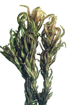 Dioicous, minute, densely tufted saxicolous moss. Tufts yellow-green above, brown below. Stems 5-6 mm tall, simple or sparingly branched, radiculose in the lower part. Leaves up to 2 mm long and 0.3 mm wide at base, crisped when dry, spreading when moist, crowded above, concave, from a widened non-sheathing ligulate base; lamina obtuse or acute, apex usually rounded; margin entire, plane or recurved to one side. Nerve about 60 microns wide at base, narrow and indistinct in the subula, failing well below apex. Cells incrassate or with firm walls, smooth, rather turgid above; those of the subula about 10 microns, usually quadrate, those below shortly rectangular, 2-3 x 1. Perichaetial bracts with much wider base. Seta c.10 mm long, erect and symmetrical, slightly plicate when dry, narrowly elliptic, with a tapered neck, annulate; stomata wanting. Peristome teeth inserted slightly below rim, red, short, c.140 microns long, irregularly divided in the upper portion, smooth, not striolate. Operculum about 1/2 the length of capsule; beak curved. Calyptra hooded, smooth. covering the capsule. Male inflorescence terminal, gemmiform with short bracts.