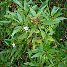 Spreading small tree bearing glossy dark green narrow toothed leaves inhabiting the Kermadec Islands. New growth very glossy, dark and sticky. Leaves to 25mm wide, tapering to a point. Flowers white with purple spots, at base of leaves. Fruit pink, on a stalk.