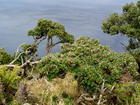 A small tree of rocky spurs, steep coastal cliffs and scarps and open forest developed on deep peat, mostly on steep, rocky areas inaccessible to stock. Occasionally it is found in sphagnum bogs, lake shore scarps and valley flank tree lands.