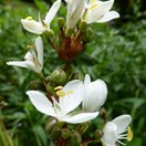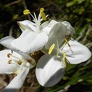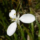 perennial, evergreen herb with short rhizomes, forming robust clumps; flower heads emergent from foliage; Petals in 3s, white, imbricating (overlapping) in some cultivated plants but not in others (these may or may not be taxonomically different).