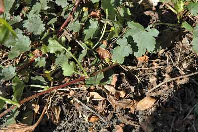 A sprawling or trailing herbaceous perennial mallow, rooting at nodes.