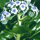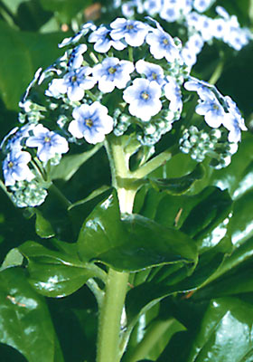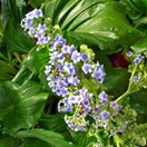A distinctive and easily recognised species with large, glossy green leaves and large blue-flowered inflorescences.