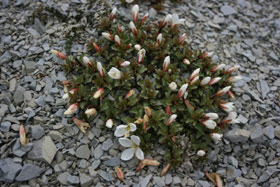 Stout herb with woody base. Branches up to 20 cm long, reddish-green, numerous, decumbent at base, then ascending, erect at tips. Leaves (6-)15(-20) × (3-)8-10) mm, narrow-oblong to ovate-oblong, margins obscurely toothed, very glossy, dark green, often reddish. Flowers pink 12-20 mm diameter, with the broad petals deeply lobed. Capsules hairless, 15-25 mm long. Seeds brown 0.8-1.4 mm.