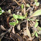 Decumbent, biennial or perennial herb, forming small, circular patches on open ground. Rosette rather open, sparsely leafy. Petiole broad 5(-10) mm long. Leaves 10-30 x 5-8 mm, glaucous green or grey, obovate to spathulate, apex obtuse or rounded, rarely subacute, base narrowly cuneate to attenuate; upper surface clad in short, stiff, sparse tightly appressed hairs. Lateral branches few, decumbent, 50-100 mm long, extending well beyond rosette leaves, rather openly branching, internodes 10-15 mm long. Stem leaves similar to rosette-leaves. Bracts up to 8 x 6 mm, rather leafy, obovate. Inflorescences cymose, cymes simple, few- to many-flowered, subtended by leafy bracts throughout, internodes < bracts, often rather short. Pedicels 1.5-2 mm long. Calyx 3-5 mm long, elongating to 4-8 mm long in fruiting material, lobes deeply cut to half calyx length, lobes subacute, hairs few, confined in lines to margins and on vertical lines of calyx, very short, stiff and coarse. Flowers white. Corolla 3 mm diameter, corolla tube cylindric 0.4-0.6 mm, lobes very narrow, apex obtuse; stamens on short filaments, anthers 0.5-0.8 mm, wholly included within corolla tube, anther tips obscured, rarely reaching scales; style 0.1-0.3, stigma capitate. Nutlets 1.2-1.5 x (0.8-)1-1.2 mm, brown-black to grey-black, broadly ovate.
