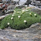 Compact, cushion-forming herb to 50 cm diam. Branches horizontal, up to 5 cm, numerous, rooting freely at nodes. Stems copiously covered in overlapping erect hairs. Leaves very broadly spathulate, crowded toward ascending branchlet tips, 5 × 2-3 mm, at first copiously covered in short, stiff, appressed hairs, which become wider-spaced as leaf matures. Flowering branches lateral, almost hidden amongst leaves. Flowers almost stalkless (sessile), subtended by a few elliptic to broad elliptic subacute stem-leaves. Calyx 2-4 mm long, with lobes split to half the calyx length, these narrow, acute, with a rather sparse covering of appressed hairs. Corolla white, 5 mm diameter, tube cylindric, 4 mm long, lobes 2 × 1-1.5 mm, oblong. Stamens with short filaments, anthers 1 mm long, mainly held above corolla-scales. Style = anthers, elongating to much > calyx in fruit. Seeds 2 mm.