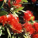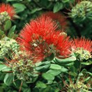 Large sprawling mainly coastal tree with leathery oval leaves, bearing masses of red bristly flowers over Christmas. Naturally occurring north of Poverty Bay and north Taranaki, but can be now found as far south as Dunedin. Branches sprawling up to around 20 metres, often with masses of dangling reddish rootlets.