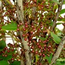 Easily recognised by the shrub of small-tree, multi-trunked growth habit, often with spindly branches, shortly petiolate, ovate-lanceolate leaves, cauliforous flowering habit, and crimson flowers.