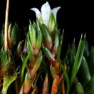 Perennial dark green, bright green to a;lmost glaucescent plants forming cushions up to 100 × 30 mm. Leaves sessile, tightly imbricate, glabrous with indistinct midrib; lamina 2.8–4.5 × 0.5–0.9 mm, linear-oblong, concavo-convex; margins minutely hyaline in distal half or for most their length; apex with apiculum 0.1–0.5 mm long. Bracts similar to leaves, glabrous; lamina 2.4–3.0 × 0.5–0.7 mm, linear to oblong; apiculum 0.2–0.3 mm long, hyaline. Flowers, white, pedicellate. Pedicels < 0.1 mm, glabrous. Calyx tube 0.4–0.6 mm long; lobes 1.1–2.1 × 0.4–1.0 mm, narrowly deltoid to deltoid unequal (with one pair slightly larger) or ± equal; apiculum 0.1–0.2 mm, glabrous, hyaline. Corolla campanulate; tube 1.7–3.0 mm long; lobes glabrous 0.6–1.0 × 0.8–1.2 mm, obtuse, ± acuminate. Styles 0.4–0.5 mm long. Capsule 2.2–3.4 × 1.9–2.5 mm; locules ± globular; wings distal, boat-shaped. Seed 0.6–0.7 × 0.4–0.5 mm, oblong-elliptic, buff, orange-brown to nut brown.