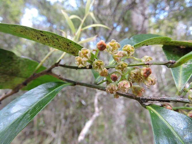 Maire Taike (Mida salicifolia) - nice images. This is one of our few truly endemic genera left. Its closest relative is a tiny shrub Nanodea found on the Falklands and Tierra del Fuego - together they belong in the Nanodeaceae. Mida is a hemisparasite - meaning it takes some nutrients from its host but can make its own food. Typical hosts are tanekaha, rimu, kauri, totara, but also mangeo, tawa etc