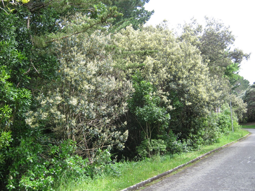 Nope I will recant that - this is Pomaderris apetala subsp. maritima - checked my own book nonetheless! Therein I sumamrise the differences between the two - you plant has congested panicles, and in the dried material they are more golden yellow, and the veins on the leaf undersides are covered in tomentum.