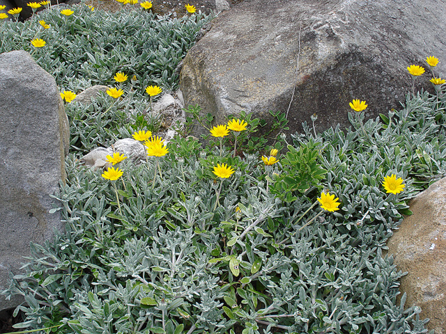 This is a plant growing among boulders in a coastal situation, Port Taranaki.