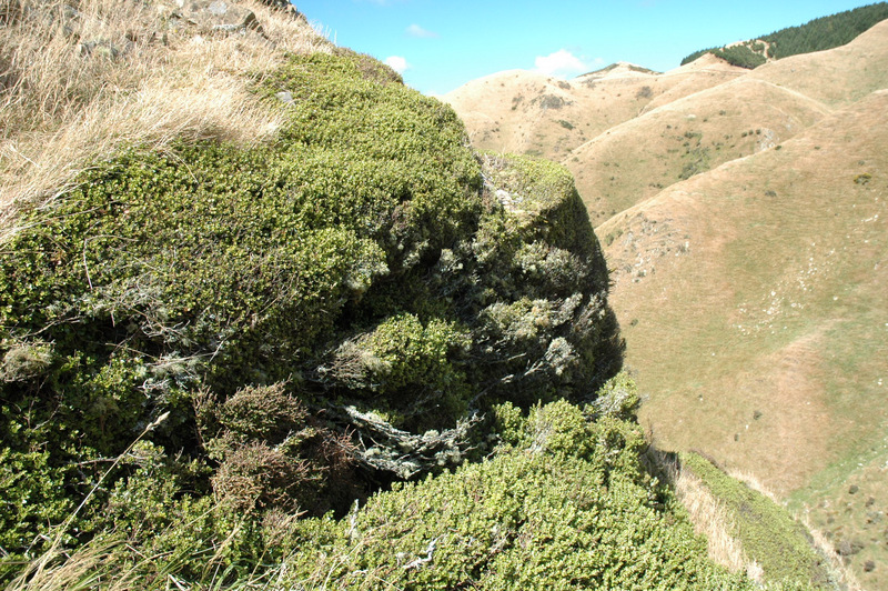 Hi John, when I lived in Wellington I once walked the coastline between Titahi Bay and Cale Te Rawhiti. Metrosideros perforata is locally common along parts of that coastline, as indeed it is elsewhere along the South Wellington coast. This species is very tolerant of a range of conditions, and it is not unusual to see it in the places you describe elsewhere in New Zealand. Remember too that at one time there was forest in these Wellington areas extending to the coast - what you are seeing with the rata is merely the final expressions of that once extensive forest.