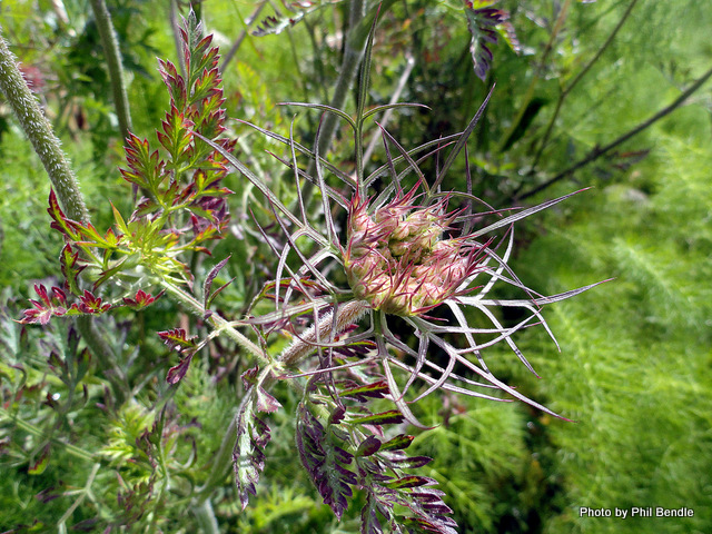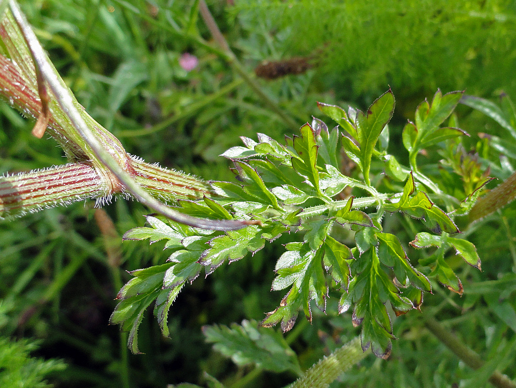 A plant looking like Daucus carota but the flowers are pink and the leaves are different. The stems are hairy
