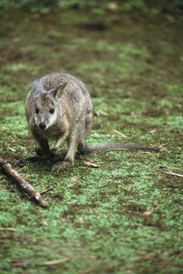 Parma wallabies inhabit dense forest understorey for shelter and feed on grass clearing.